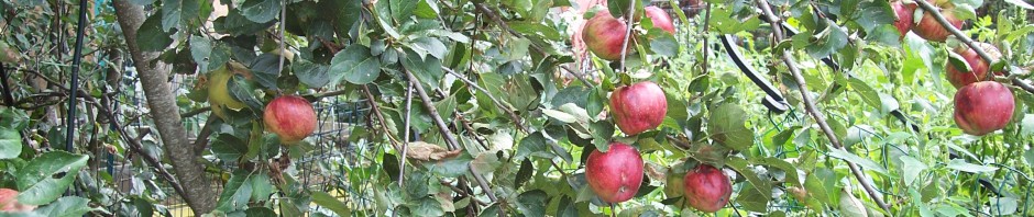 This picture and the one in the page header above are both of part of our Apple Arbor. A close planting of parallel rows of apple trees to form an arch / tunnel. Based on one we saw on a visit to Colonial Williamsburg