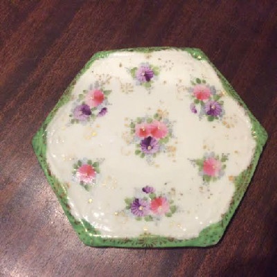 This Floral Tea Tile was hand painted in the 19th c. when many Victorian ladies painted porcelain. The artist did not sign this delicately beautiful tea tie.