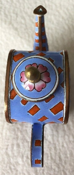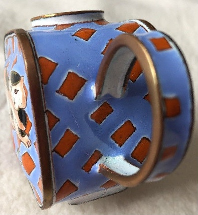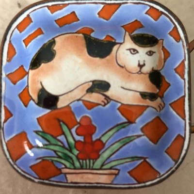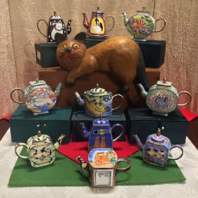 This FUN unsigned miniature enamel Kevin Chen teapot is ready for you to use as an ornament (be creative with clear fish line), a stocking stuffer, display or give to a special cat lover on your gift list.