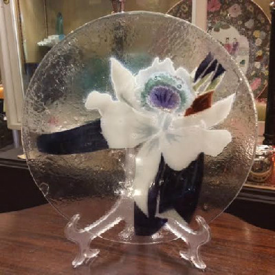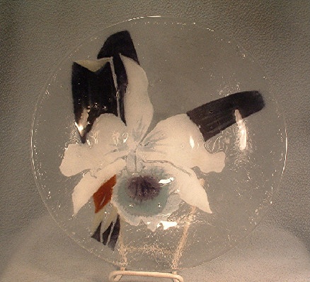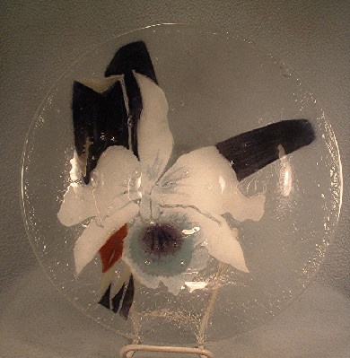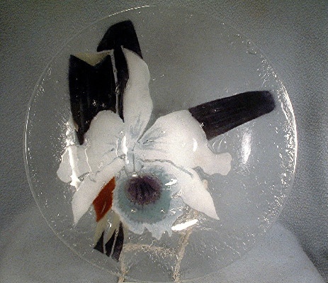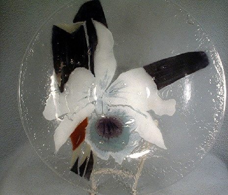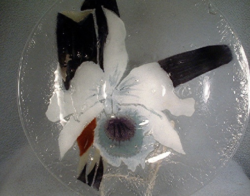 This Victor Palumbo St. Luke – Hand Crafted American Art Glass – White Cattleya Orchid Bowl from 1980 is perfect to display as art OR use as a centerpiece bowl filled with water and floating flower blossoms – your choice, orchid or otherwise.